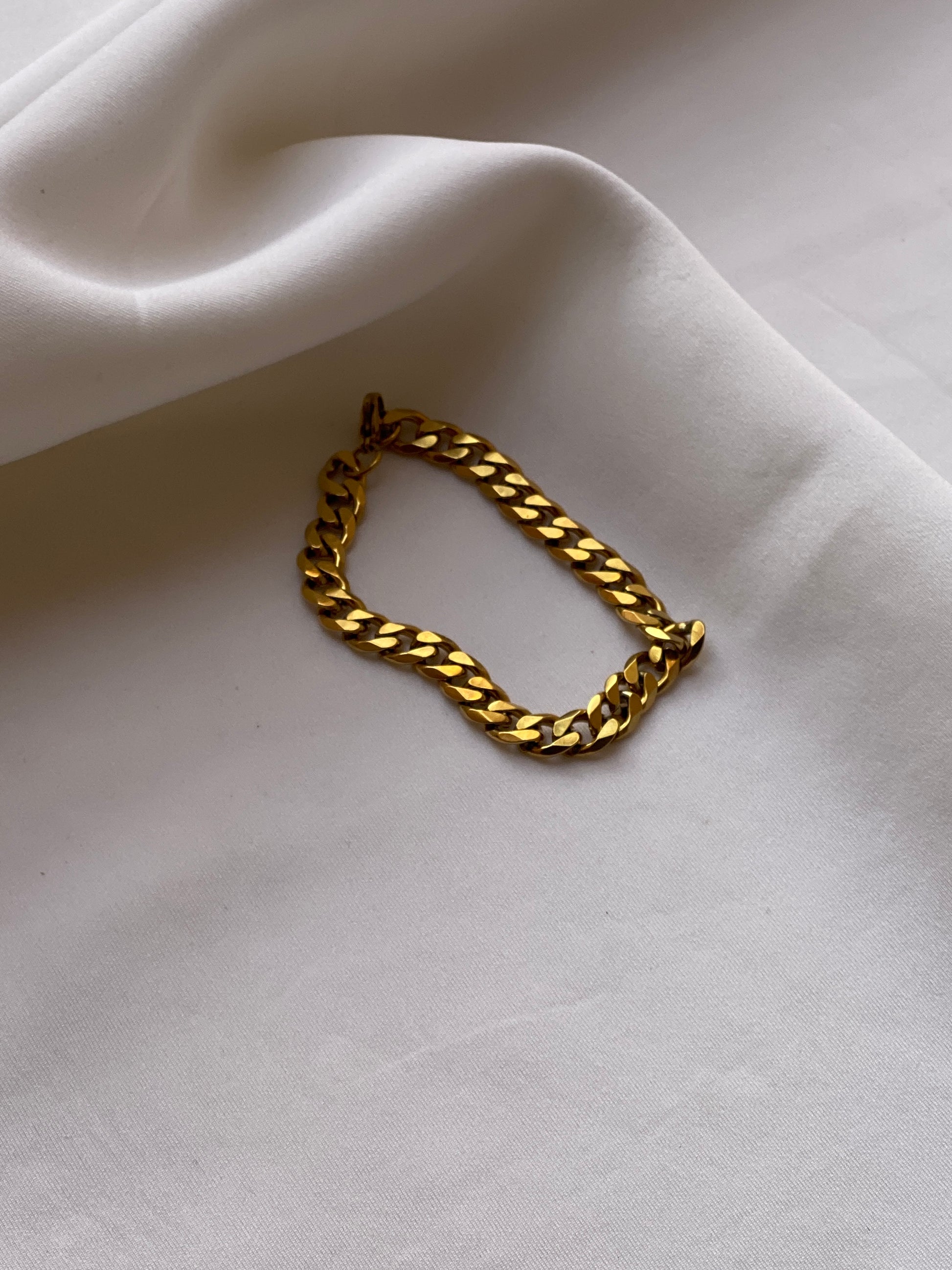 The Aurealink Bracelet — a bold take on a timeless classic. Featuring chunky gold links with a smooth, polished finish, this bracelet captures the perfect balance between strength and sophistication. Designed to elevate your everyday look, it adds a touch of golden confidence to any style — from laid-back fits to evening wear.