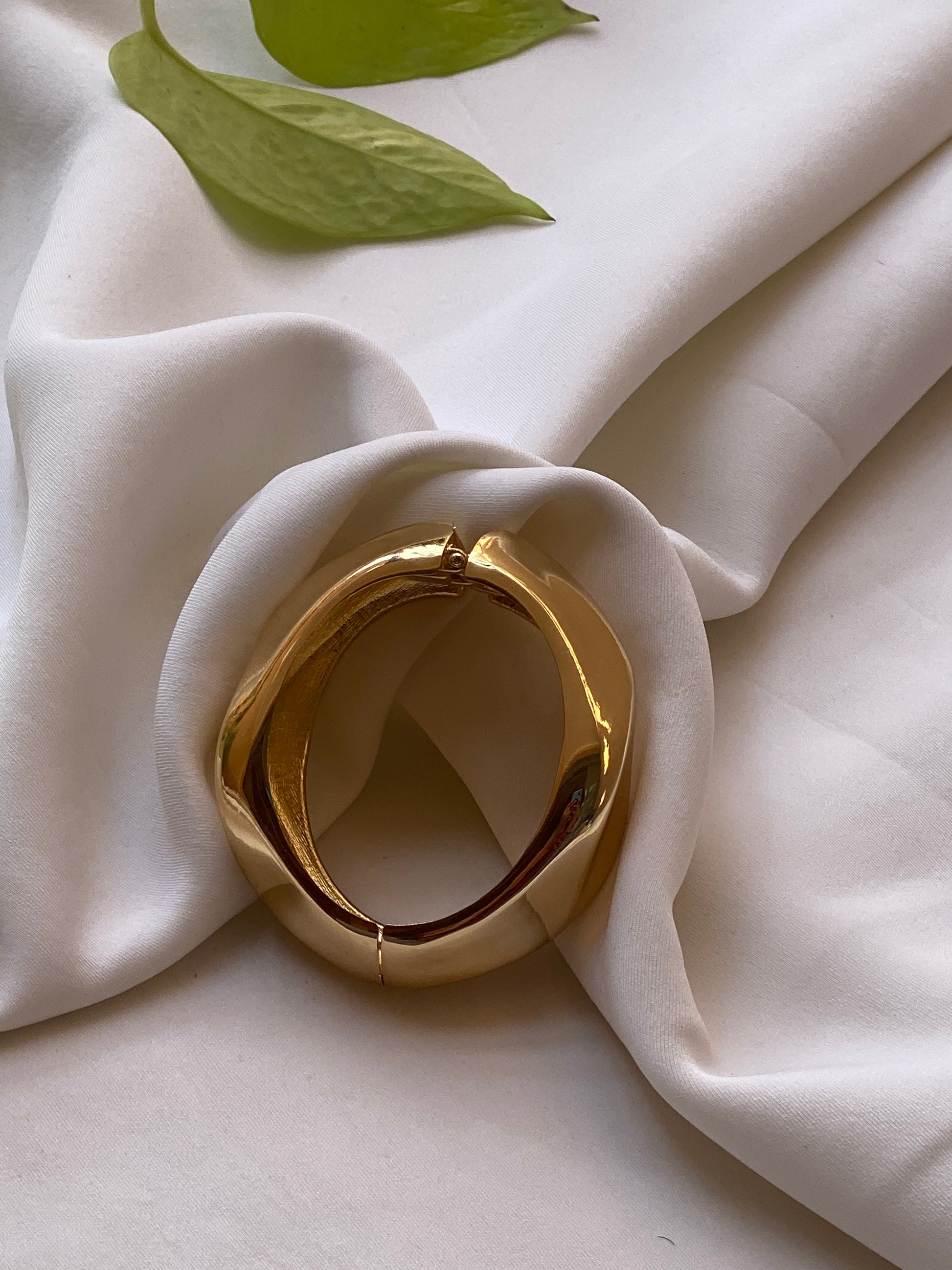The Bolda Cuff — a masterpiece of modern minimalism. With its thick, sculpted silhouette and high-polish gold finish, this cuff is designed to command attention. Its smooth, curved form gives it a bold yet refined presence, making it the perfect statement piece for those who love clean, confident style.