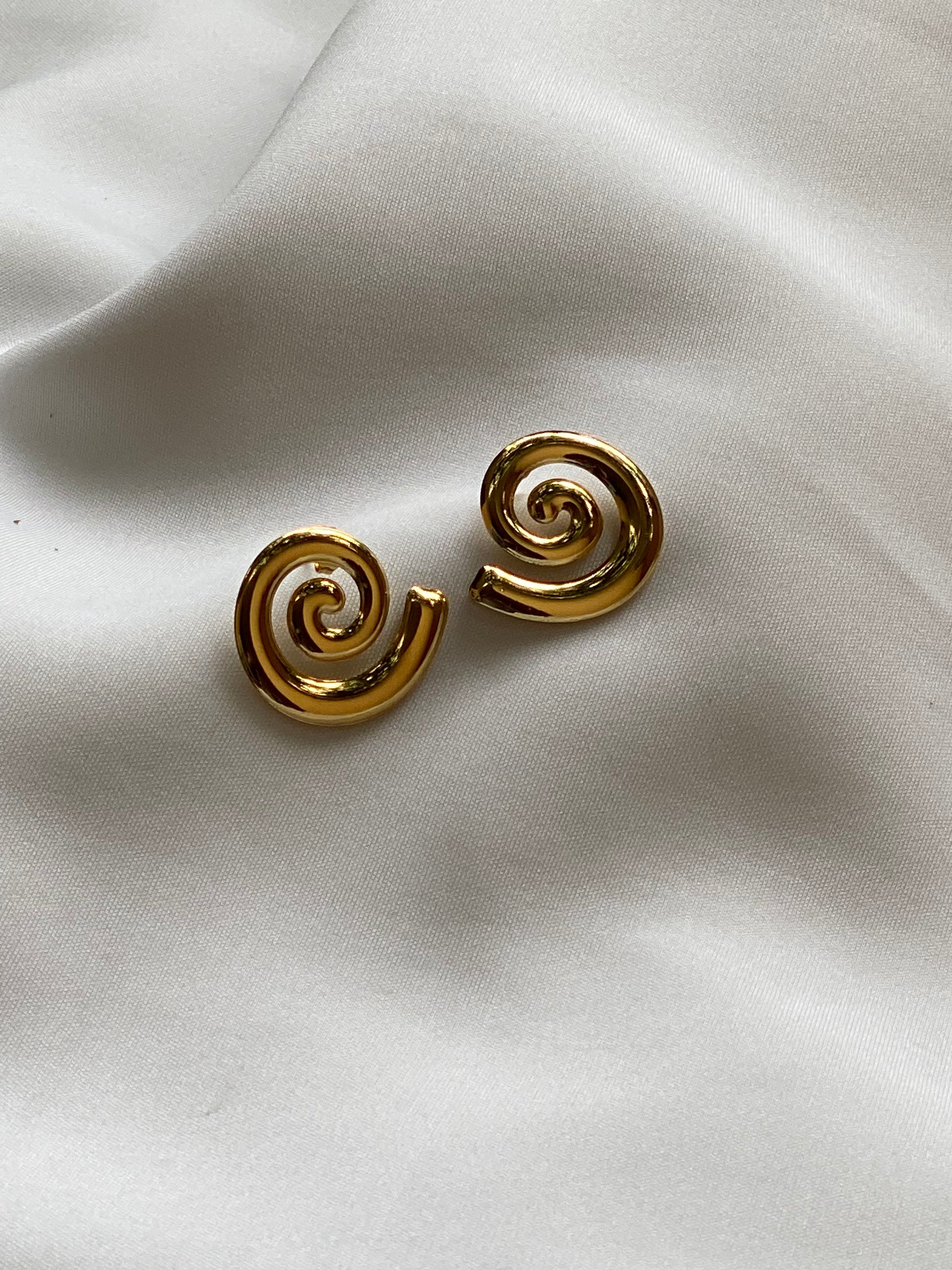 The Eterna Studs — a symbol of endless elegance. Featuring a bold spiral design in radiant gold tones, these studs capture the essence of timeless beauty and flow. Their sculptural form adds a modern yet classic charm, making them the perfect statement piece for any occasion.