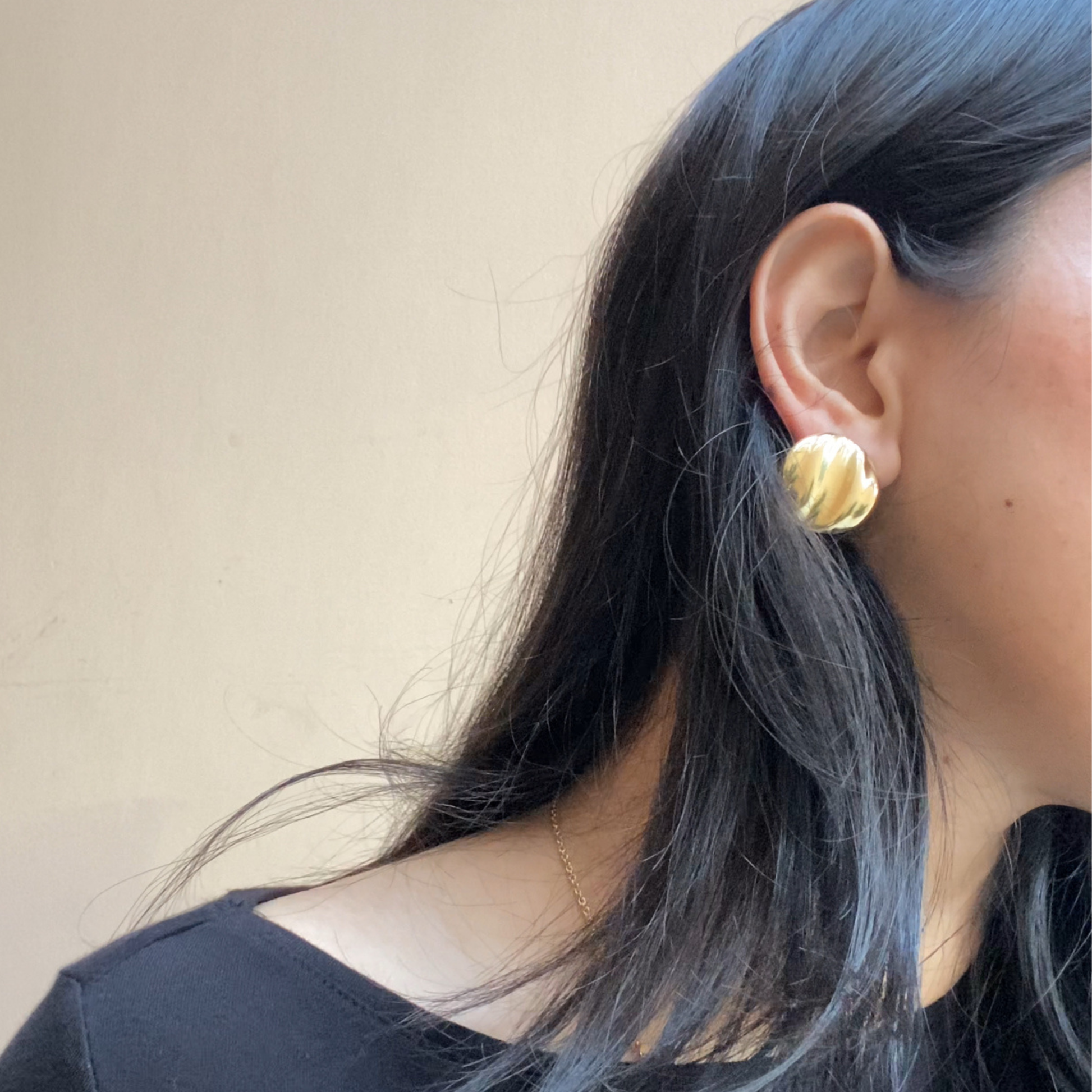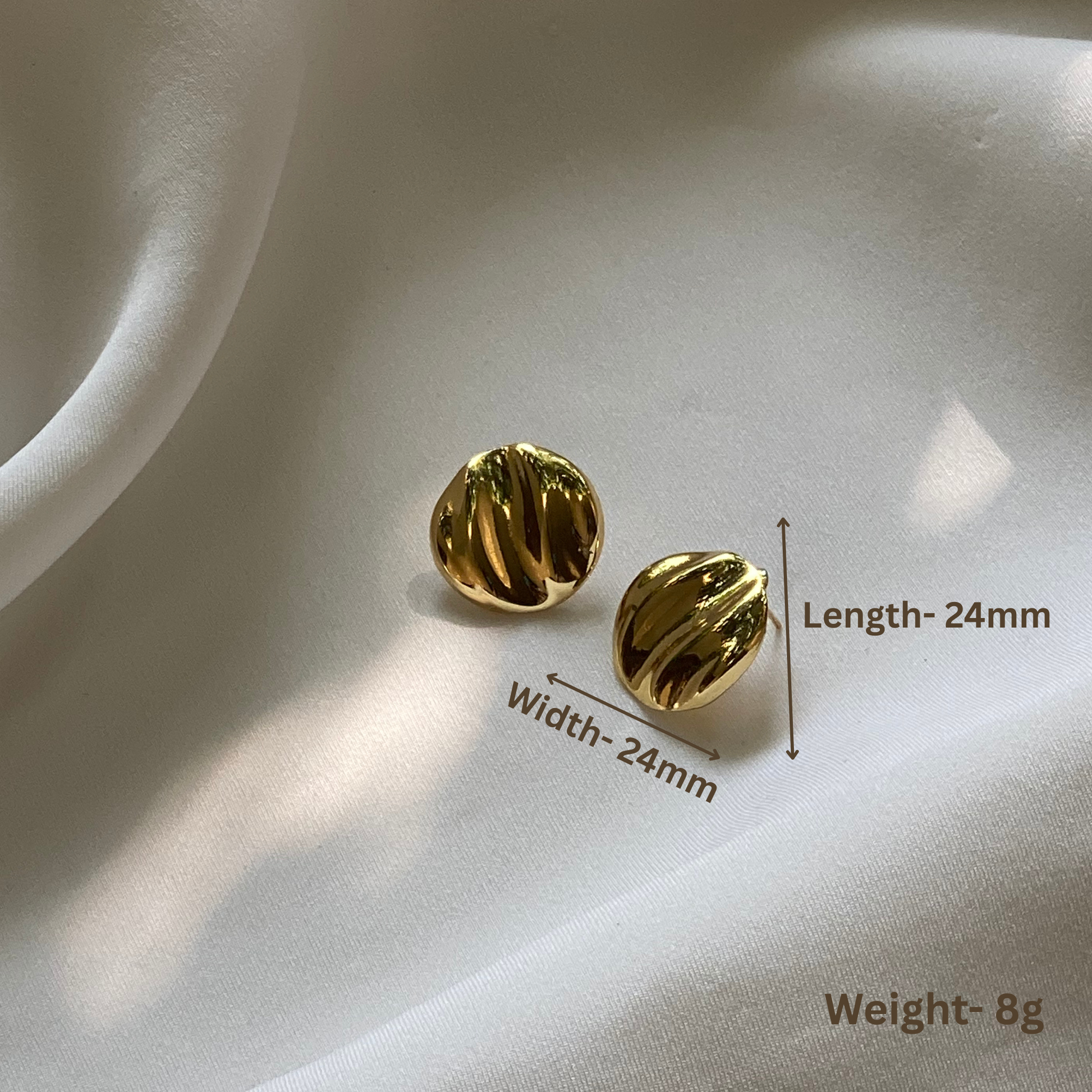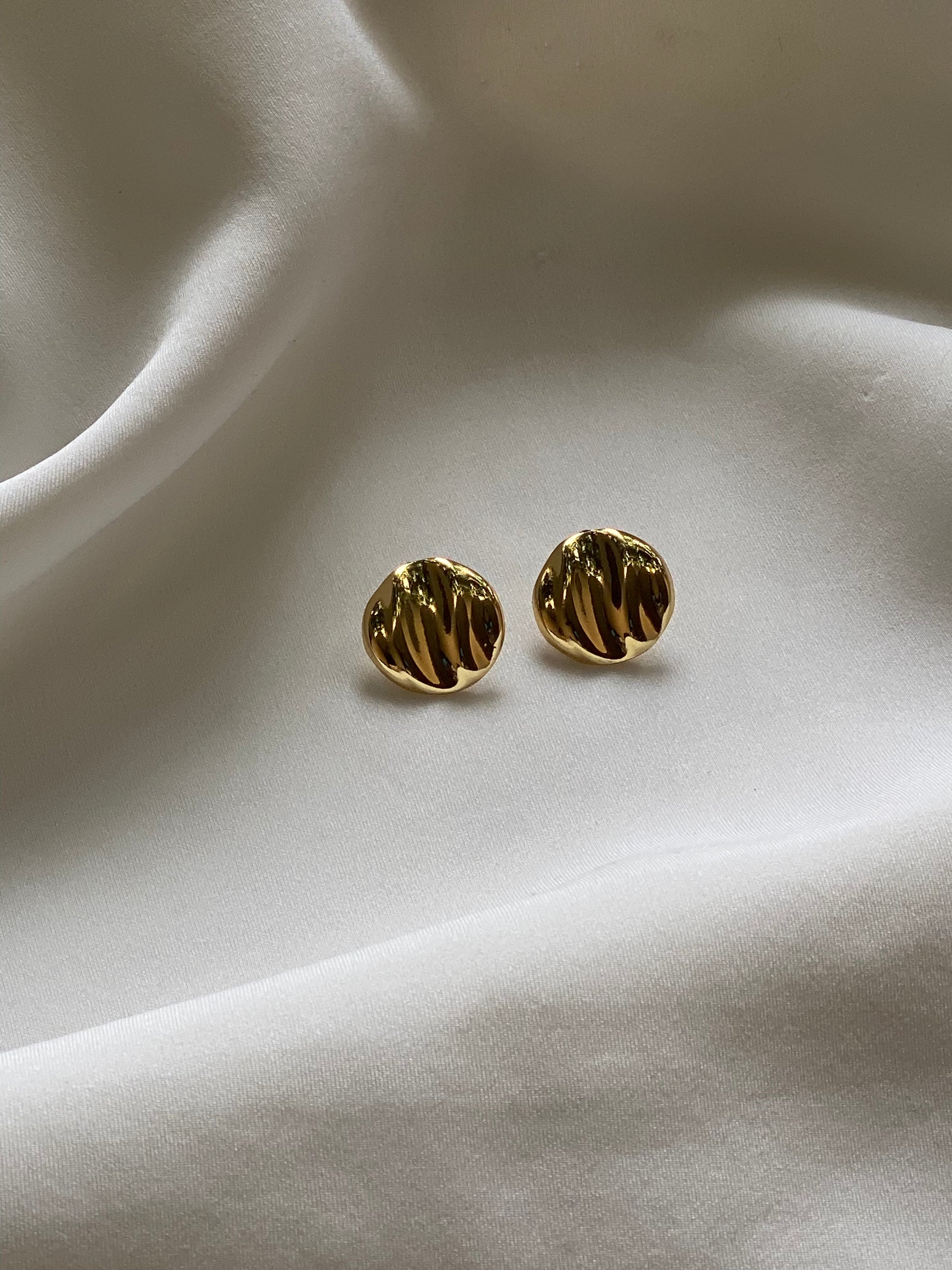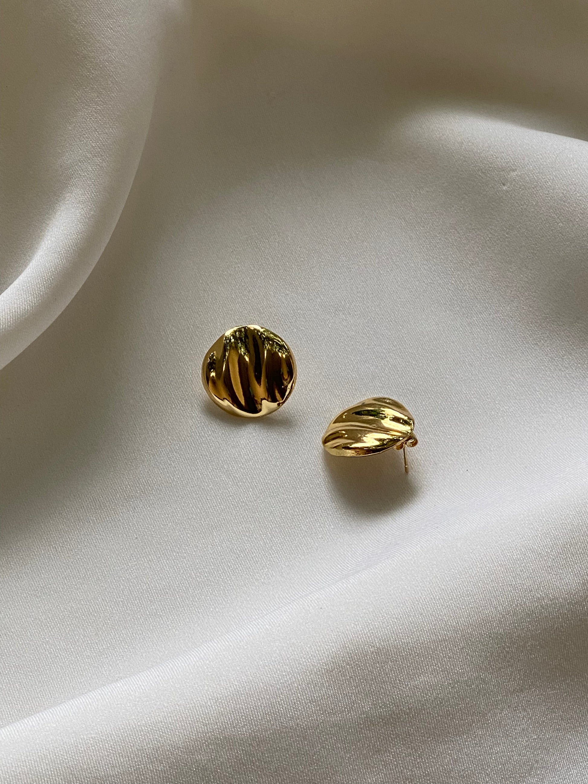 The Haalo Studs — a bold yet minimal statement in gold. Crafted with a wavy, molten texture, these round studs reflect light beautifully, giving the illusion of movement and depth. Their organic design adds a modern twist to timeless gold jewellery.