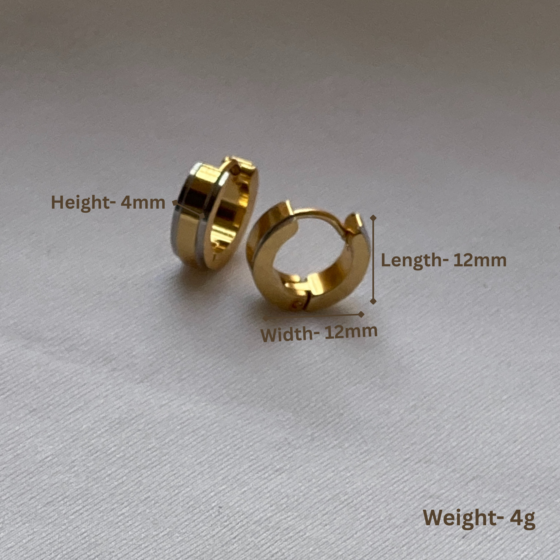 The Lineaa Hoops bring a sleek, modern touch to classic gold design. Featuring a polished dual-tone band with clean, linear detailing, these hoops strike the perfect balance between subtle sophistication and everyday elegance.