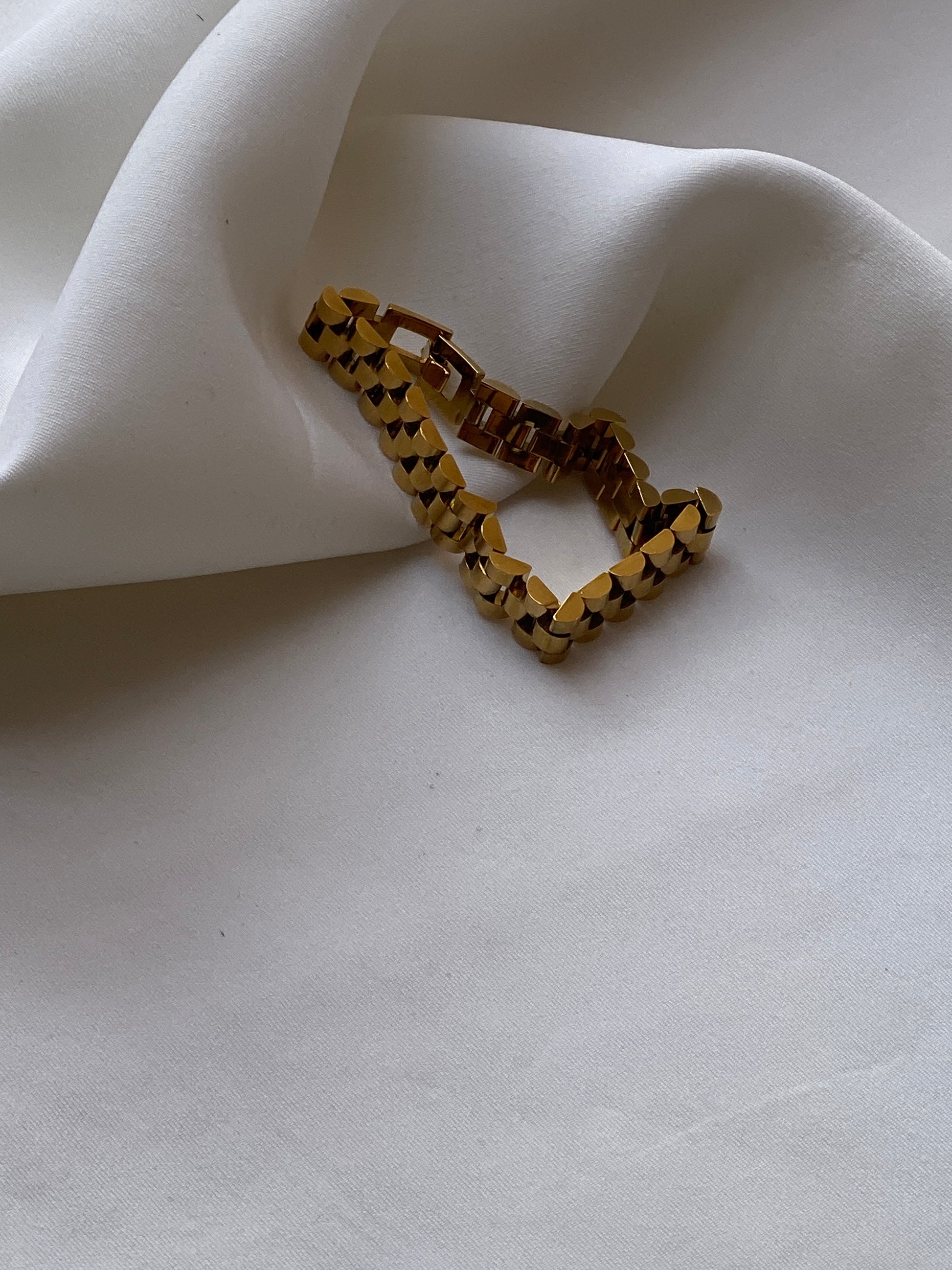 Our Luna Link Bracelet — Crafted from premium& stainless steel, this bracelet mirrors the refined charm of a classic watch while staying effortlessly modern. Designed for daily wear, its durable finish ensures it shines beautifully for up to 6 months, even with regular use.