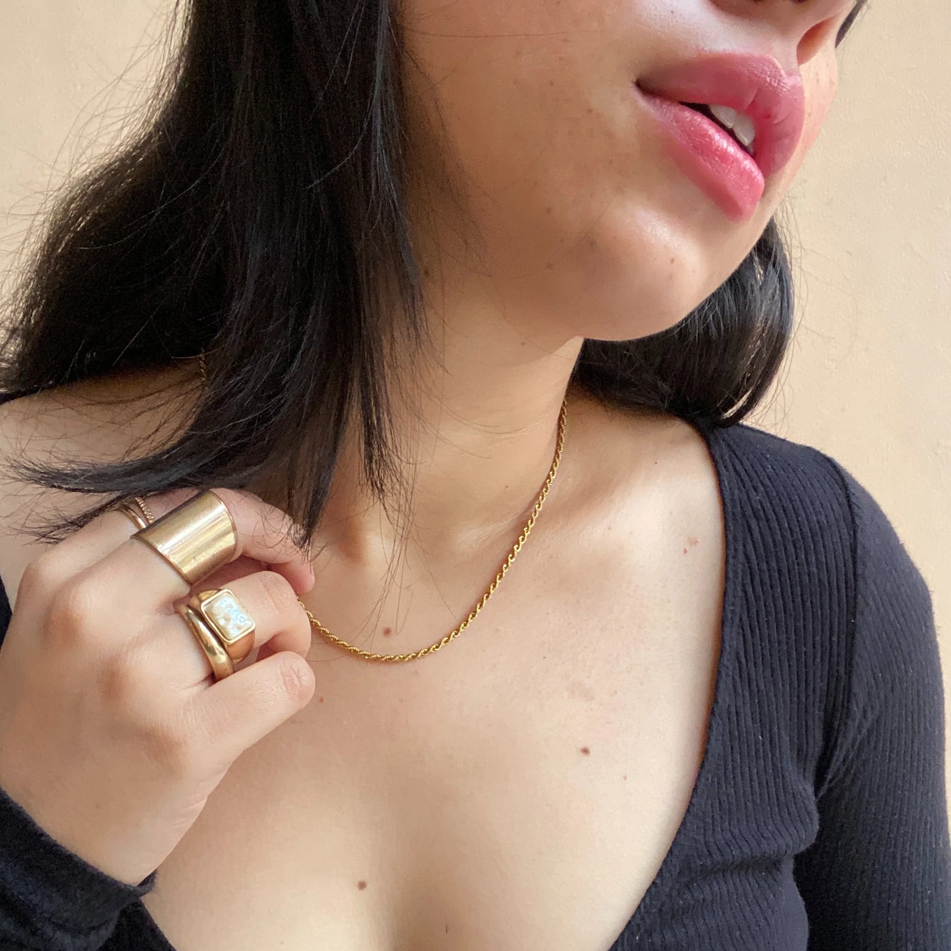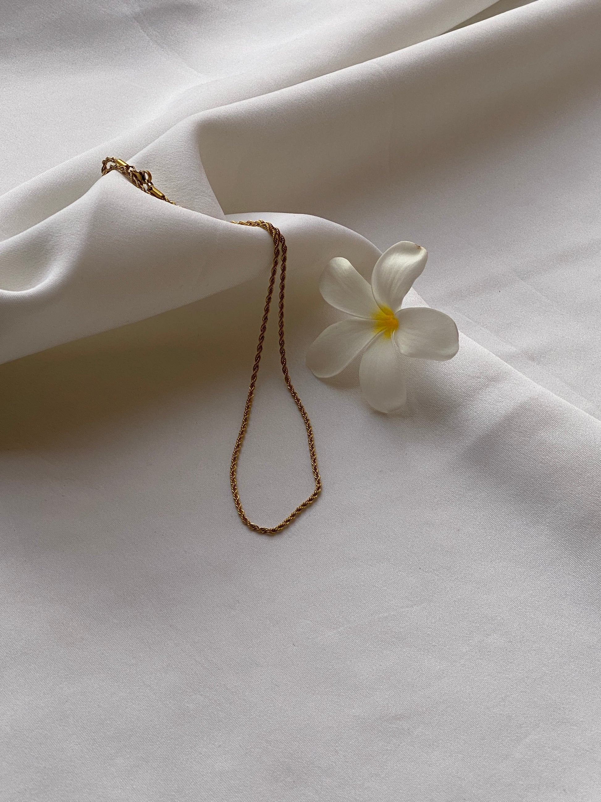 The Lynkloop Chain — a delicate twist on classic design. This chain features intricately interlinked loops that catch the light with every turn, creating a subtle yet captivating shimmer. Its textured finish adds dimension, making it a perfect everyday piece that pairs effortlessly with pendants or layers beautifully with other chains.