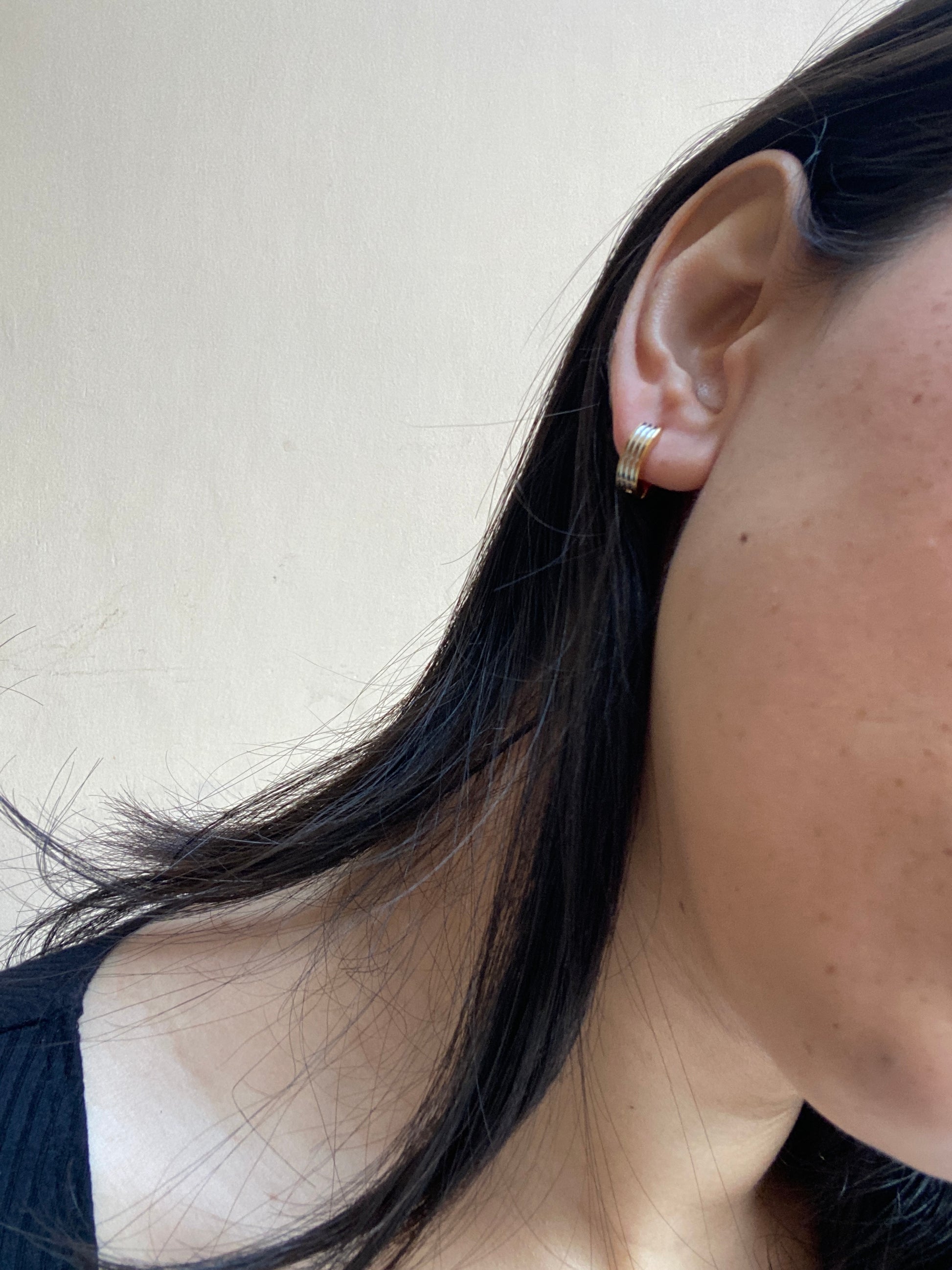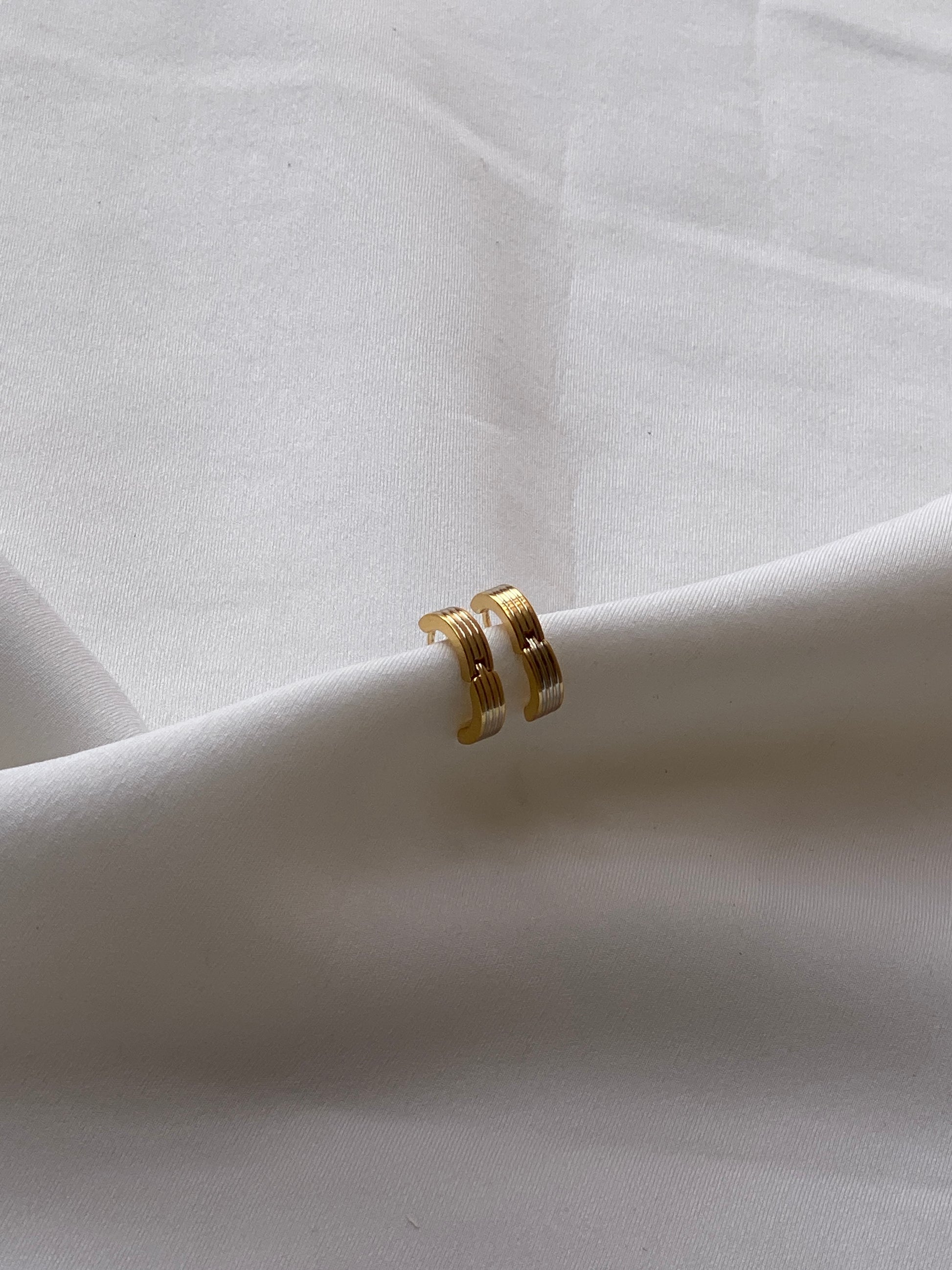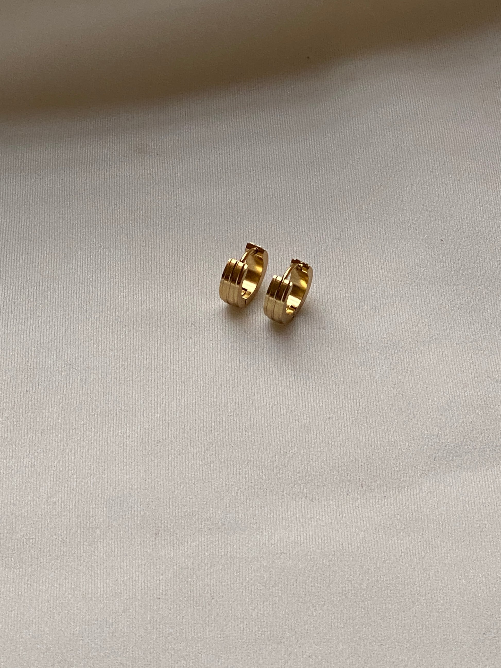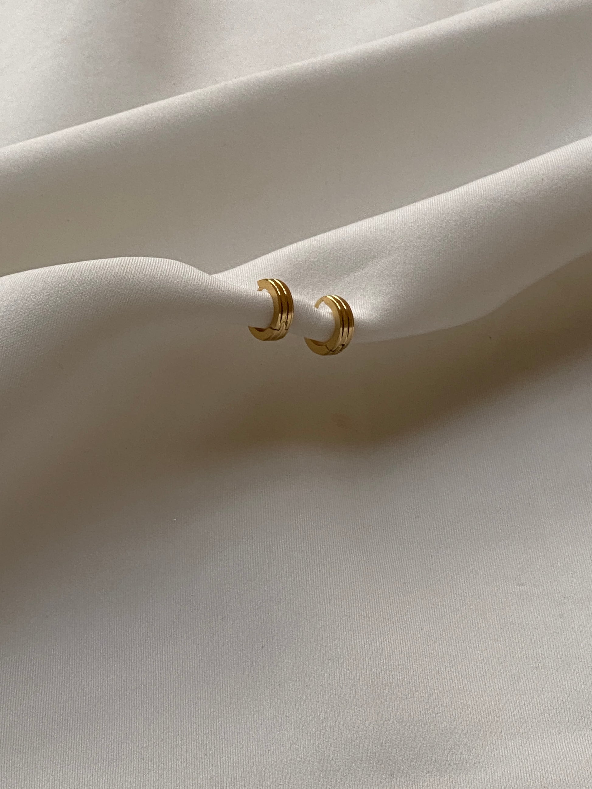 The Musse Hoops — subtle texture, timeless charm. These mini hoops feature a ribbed, grooved design that adds a touch of dimension while keeping the look clean and refined. Perfect for daily wear, they bring just the right amount of shine to elevate your everyday style.