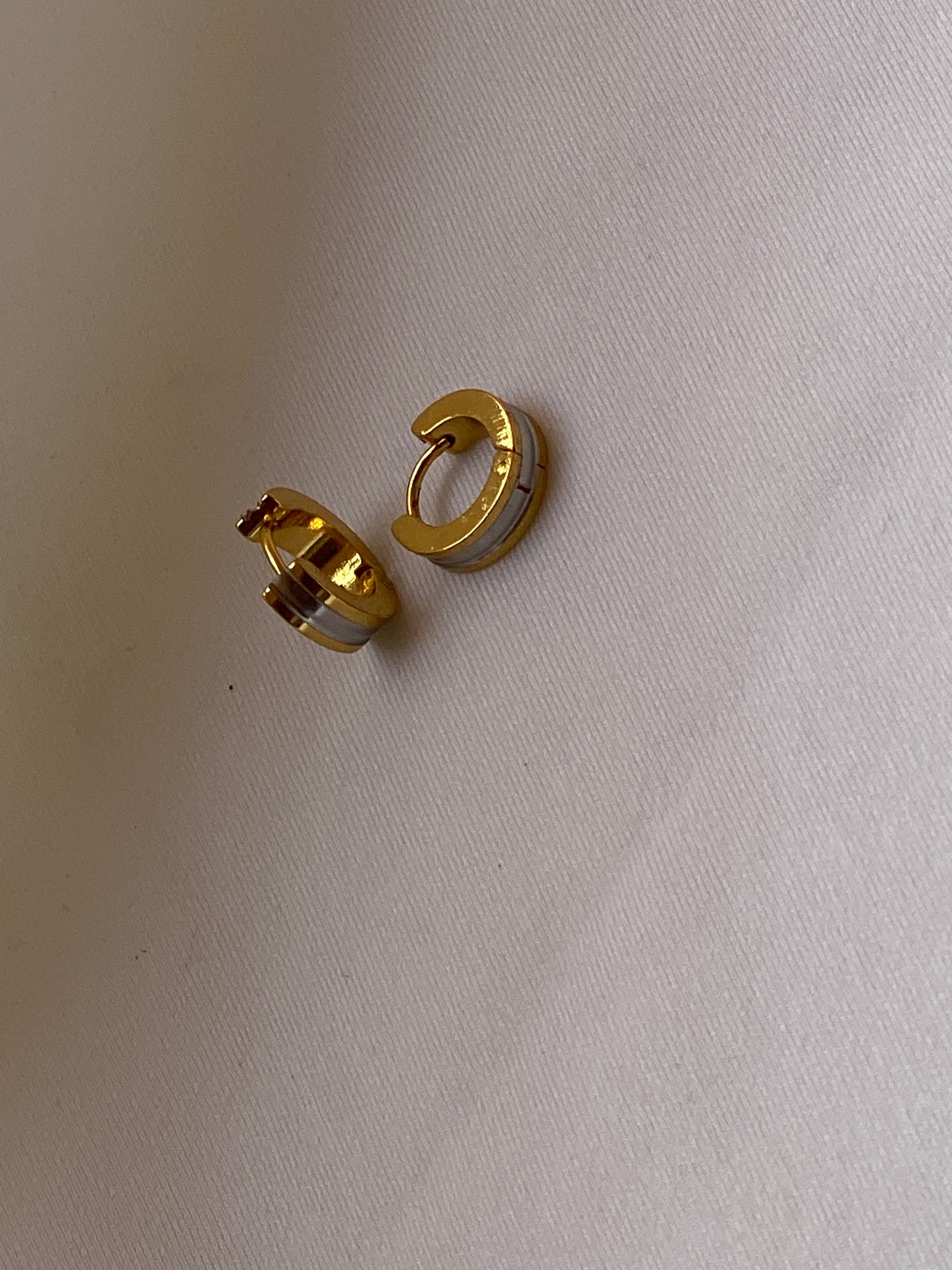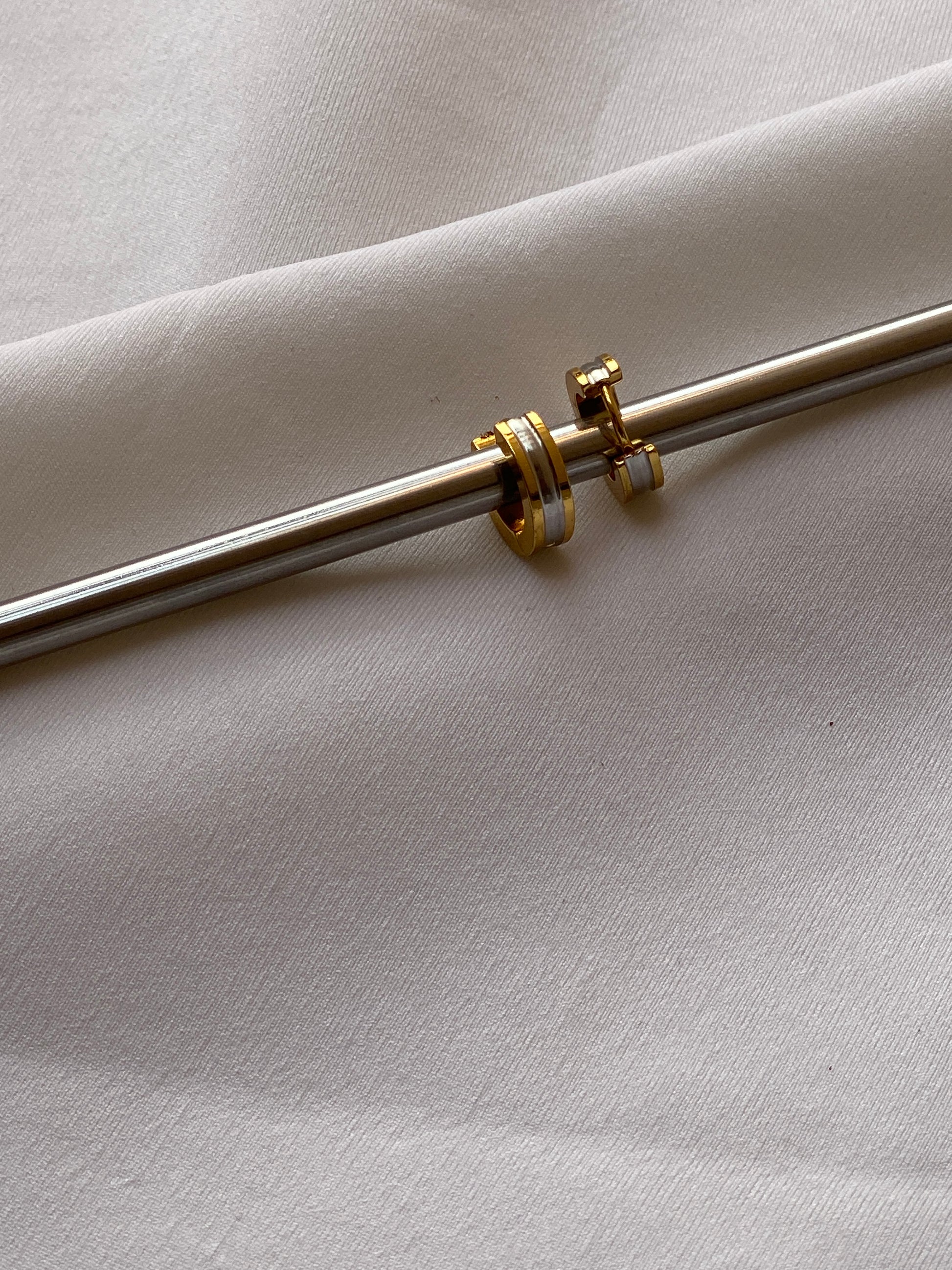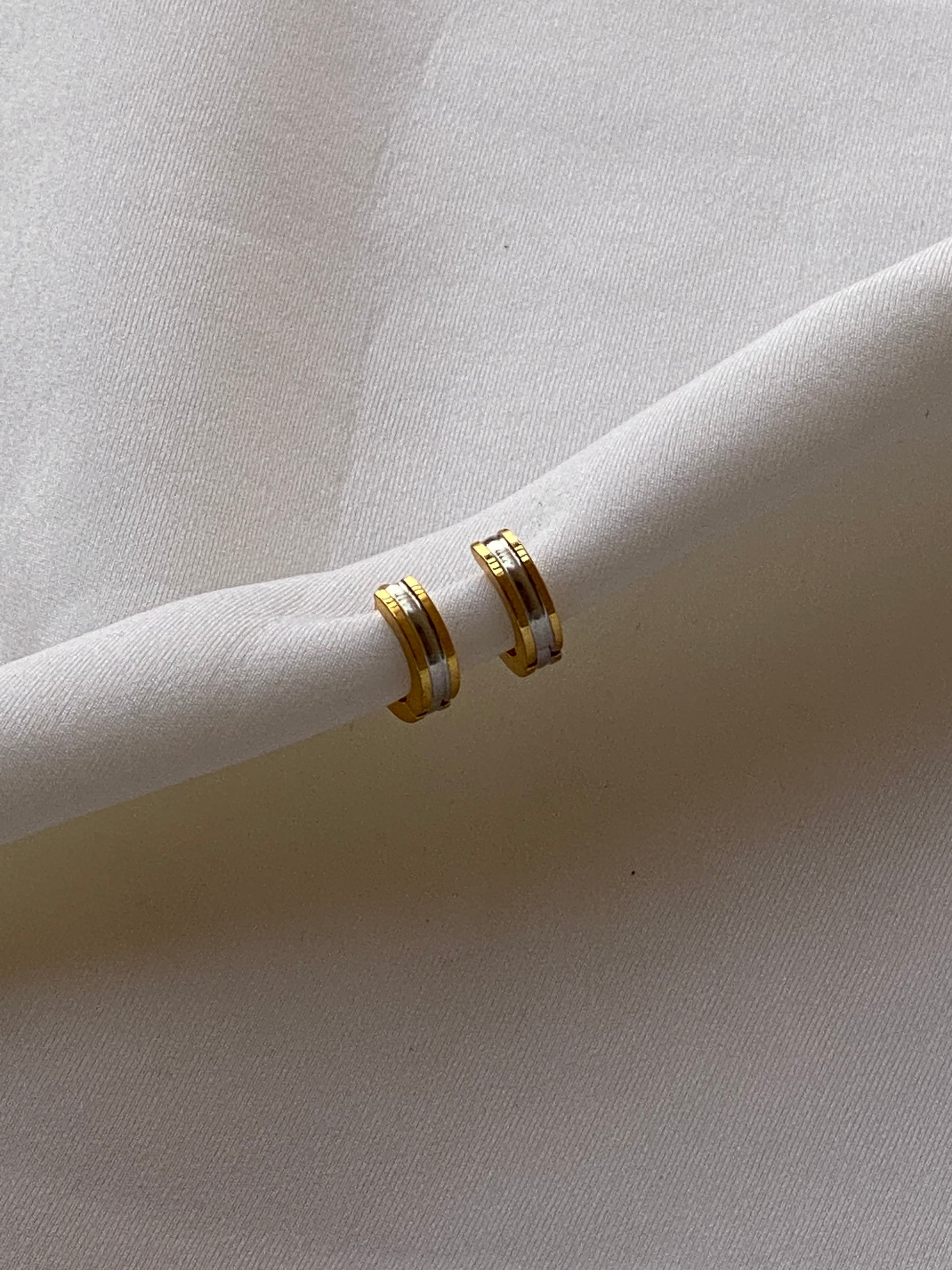The Oria Hoops — sleek, structured, and effortlessly elegant. These mini hoops feature a dual-band design with clean lines and a polished finish that reflects understated luxury. Designed to elevate your everyday look, they strike the perfect balance between minimal and statement.