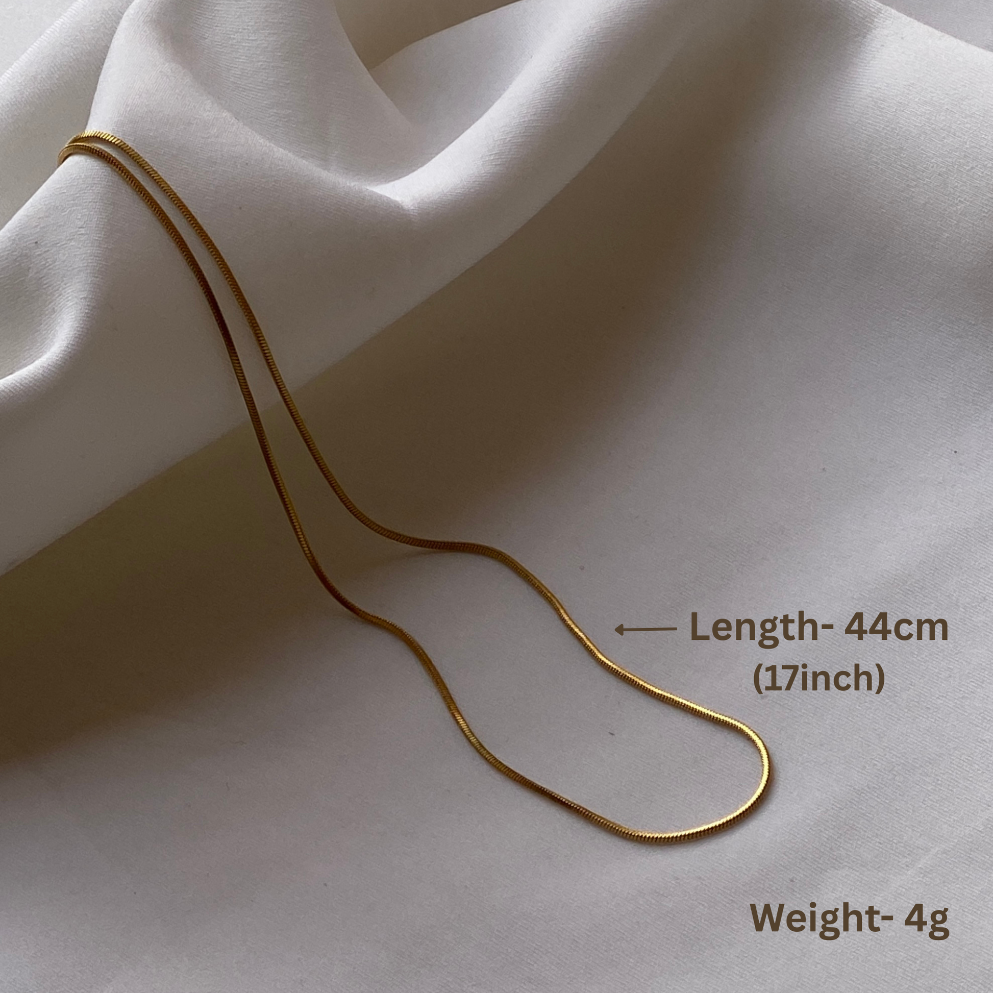 The Serenaa Chain — simple, sleek, and endlessly elegant. This delicate gold chain features a smooth design that rests beautifully on the skin, adding a soft touch of shine to your everyday look. Lightweight and versatile, it’s the perfect piece to wear solo for minimal charm or layer for a modern, effortless stack.
