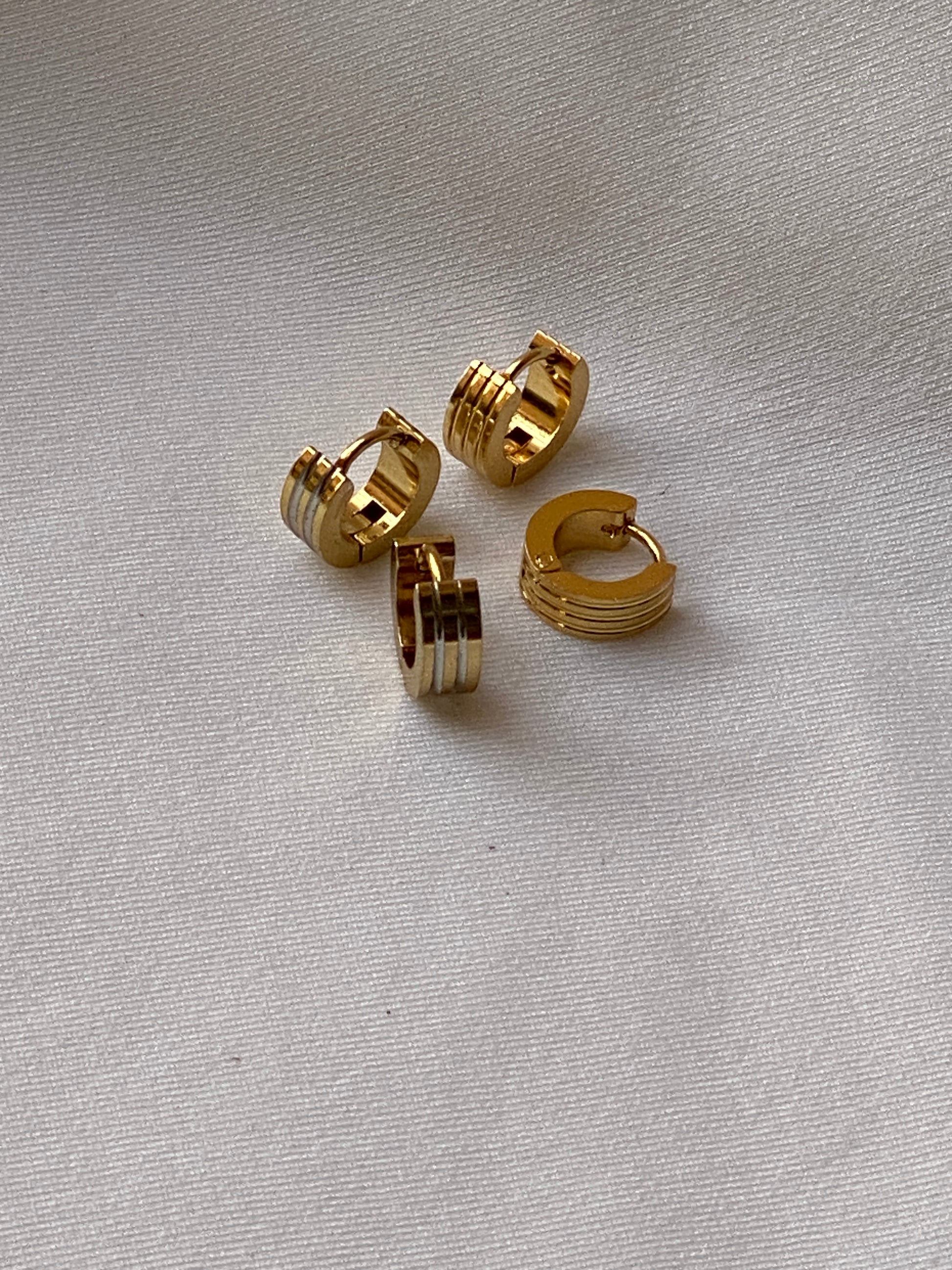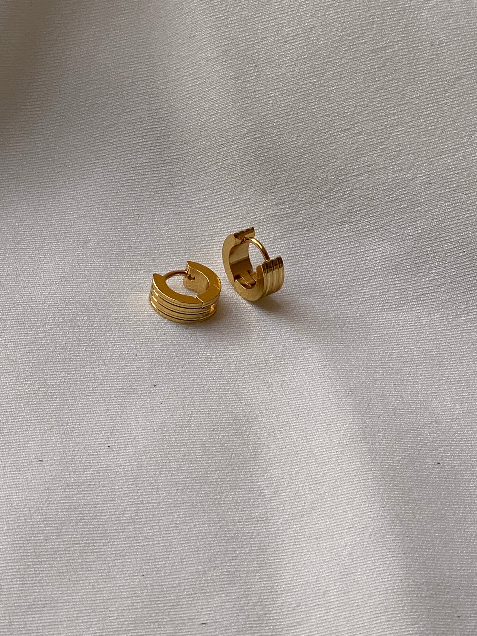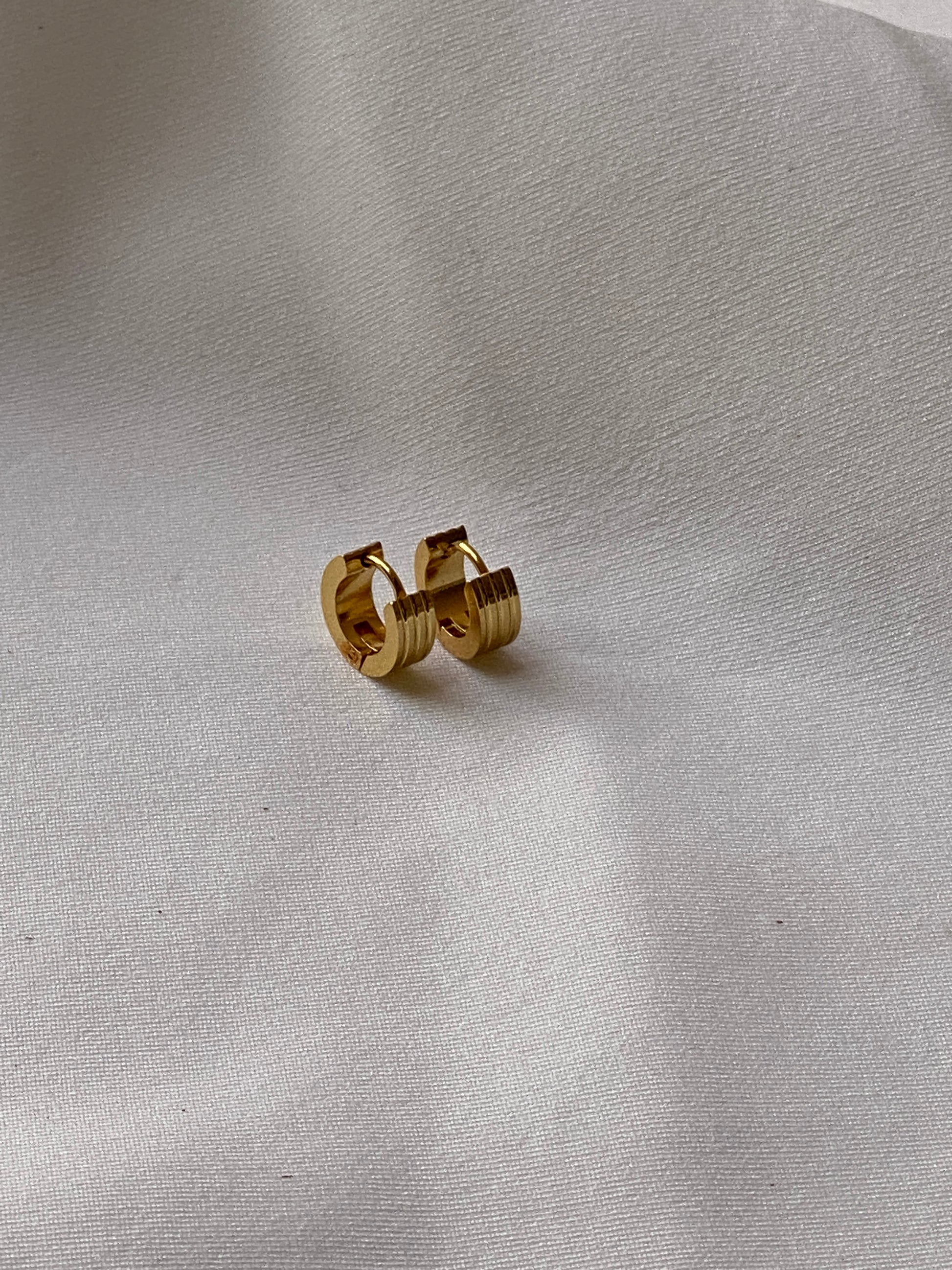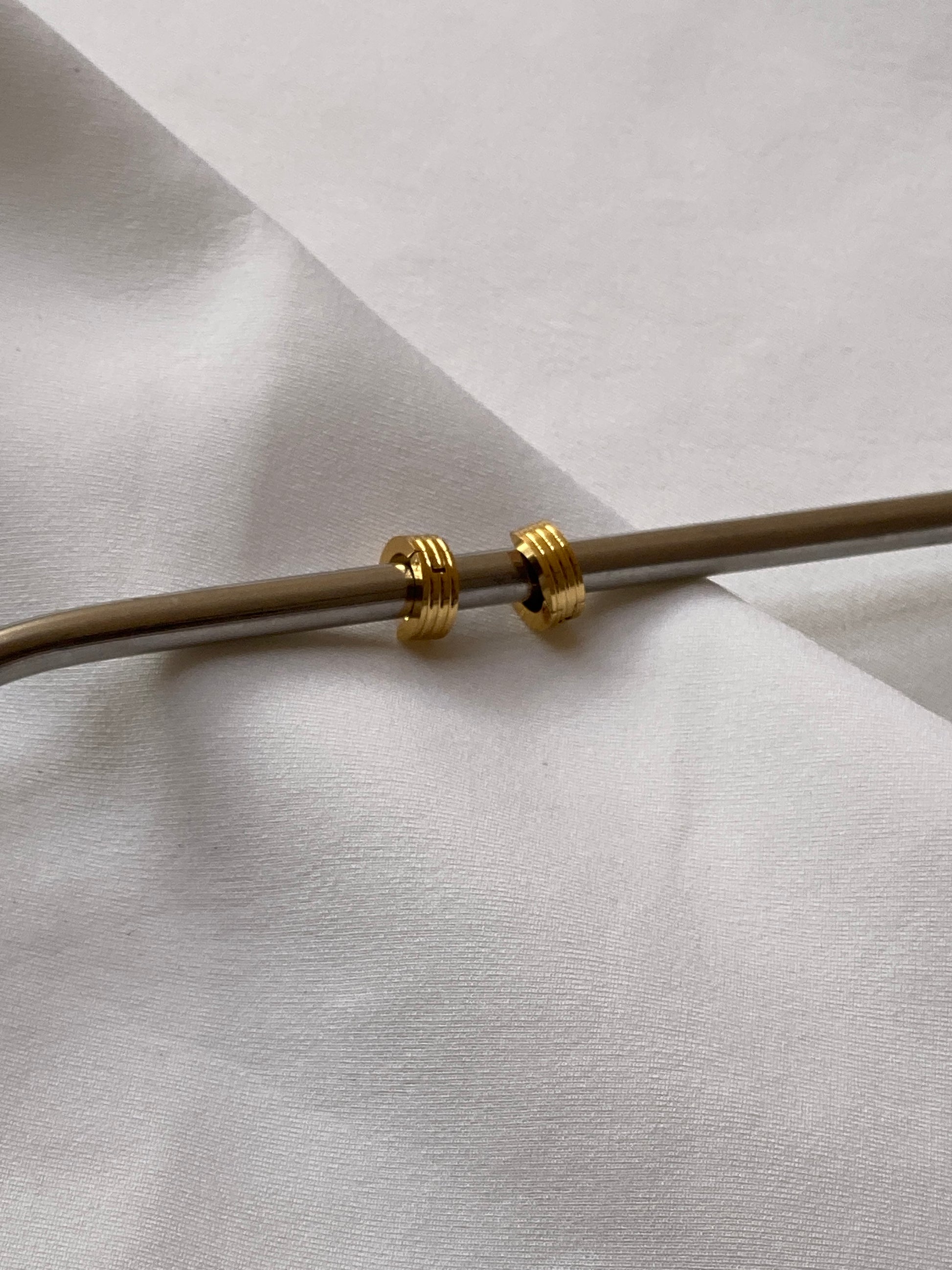 The Twine Hoops — modern minimalism with a sculptural twist. These mini hoops feature a layered band design, giving the illusion of multiple hoops in one sleek piece.